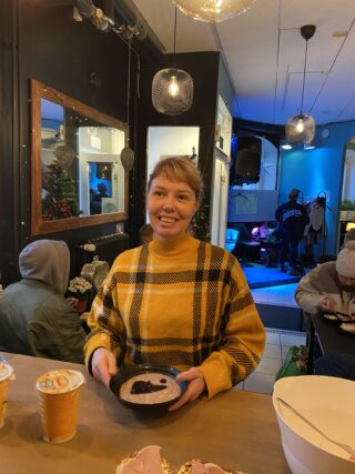 Teen vapaaehtoistyötä kaksi kertaa viikossa. Autan muun muassa aamupalan valmistelussa ja jakamisessa. Lisäksi teen hallinnollisia tehtäviä ja graafista suunnittelua. Viime vuonna kehitin raporttipohjan, johon keräämme tilastotietoa kävijämääristämme ja niiden vaihteluista eri päivinä. Käytämme tätä tietoa esimerkiksi rahoitushakemuksissa.