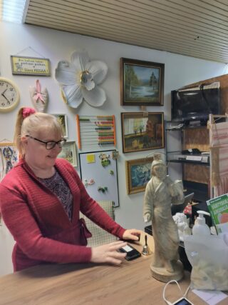 Maanantaisin valmistan ruokaa paikallaolijoille ja osallistun ruokajakoon. Olen myös mukana ViaDia-torin puolella – välillä lajittelen tavaroita, välillä toimin kassalla. Lisäksi huolehdin siisteydestä, esimerkiksi imuroimalla. Teen mielelläni kaikkea, mikä tuo hyötyä ja iloa. Työtehtävät vaihtelevat: joskus kokkaan, toisinaan pakkaan kasseja – ja juuri se vaihtelu tekee tästä niin mukavaa!